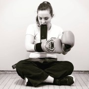 Je me présente, Charlotte Guibé, coach spécialisée dans les sports de combat, tout particulièrement le krav maga (self-défense) et le kick boxing (boxe pied-poing).